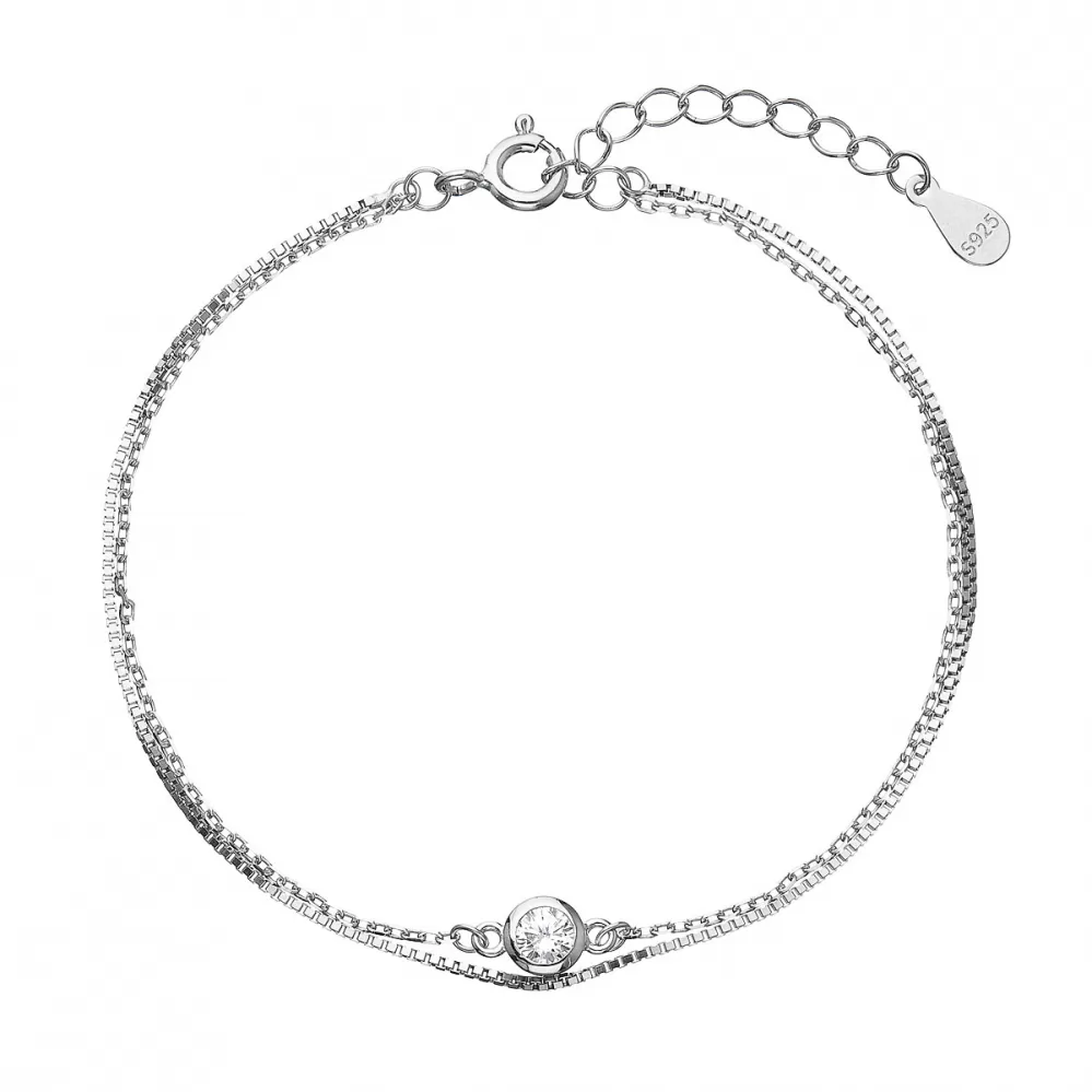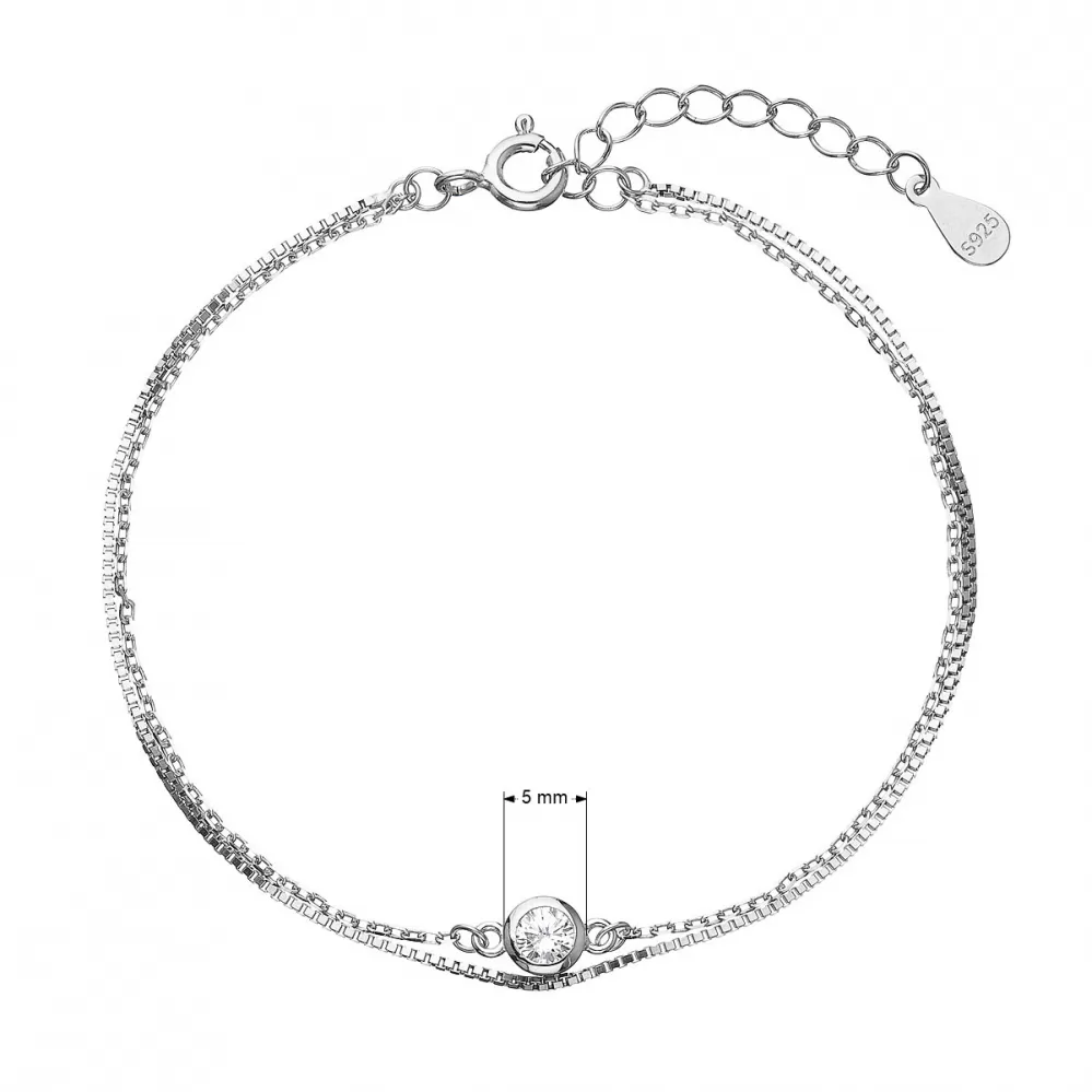 Strieborný náramok dvojitá retiazka so zirkónom 63006