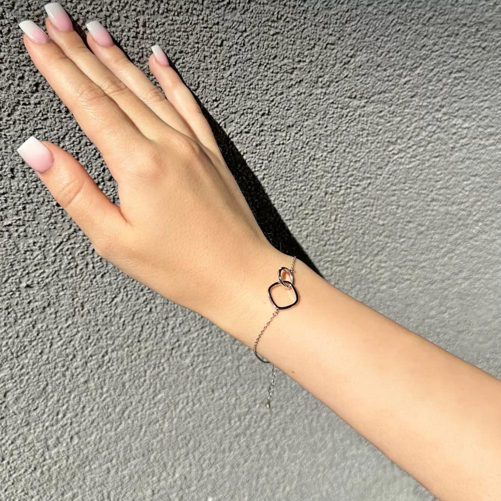 Veľmi nežne pôsobiaci jednoduchý náramok so zaoblenou kockou zdobenou drobným zirkónikom. Kostička je z jednej strany na trendy zdvojenej retiazke az druhej strany na retiazke s väčšími očkami.