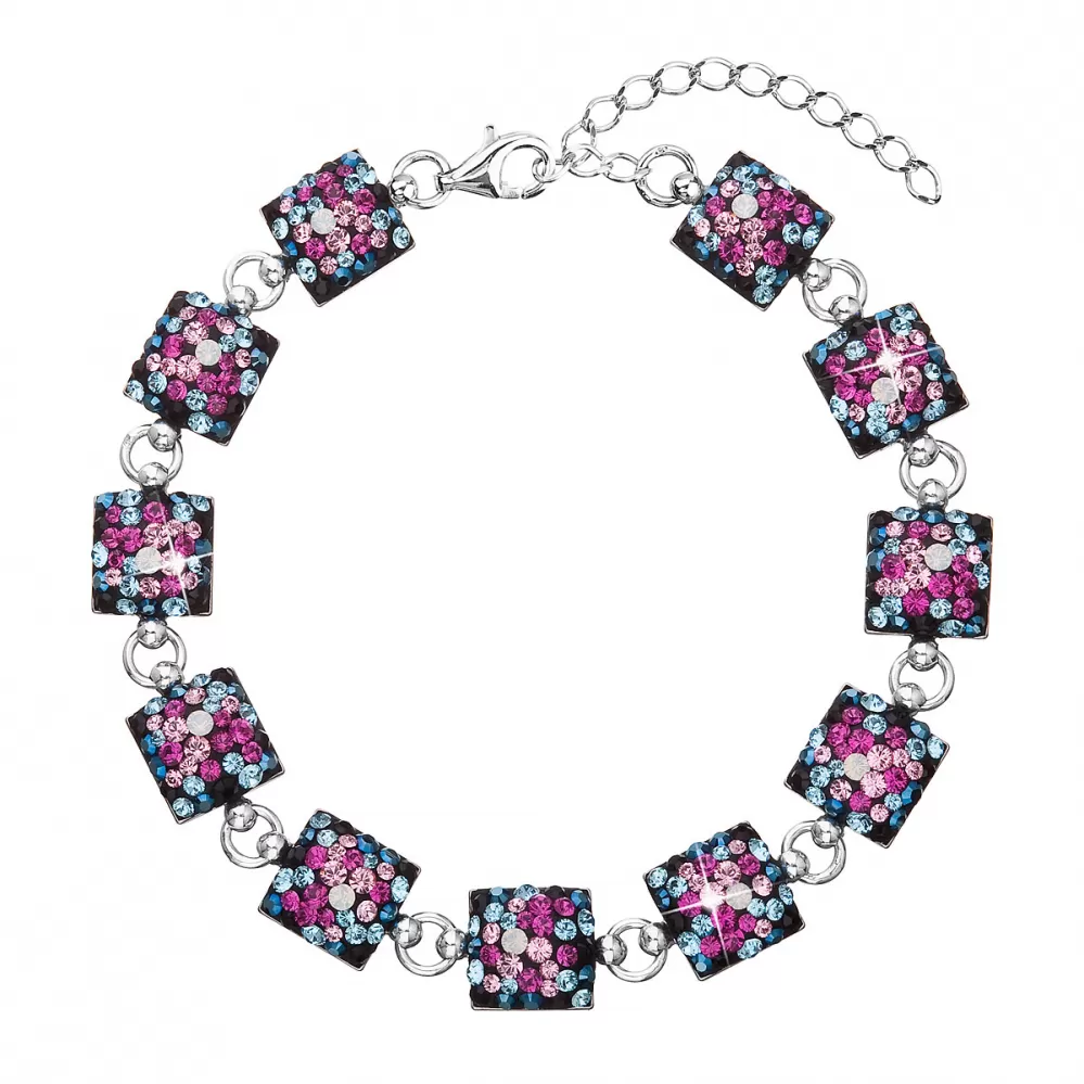 Strieborný náramok so Swarovski kryštálmi mix farieb 33047.4 galaxy