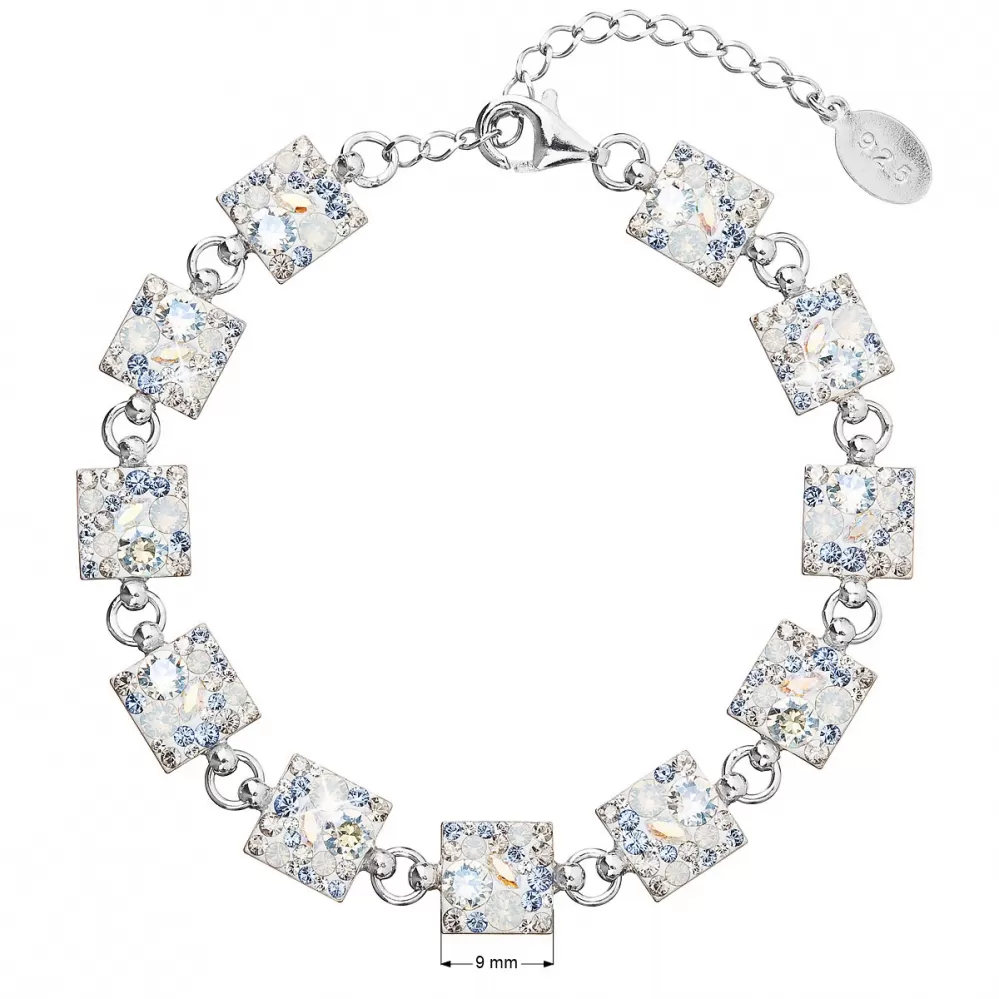 Strieborný náramok 33047.3 light sapphire je vyrobený zo striebra rýdzosti 925/1000, ktorého povrch bol ošetrený ródiom. Rhodium šperk ochráni proti sčerneniu, zožltnutiu aj poškriabaniu. Náramok je zložený z niekoľkých strieborných štvorčekov, ktoré sú bohato vysadené Swarovski kryštálmi v rôznych farbách. Keďže náramokneobsahuje prídavok niklu, môžu ho bez obáv z alergickej reakcie nosiť aj alergici.