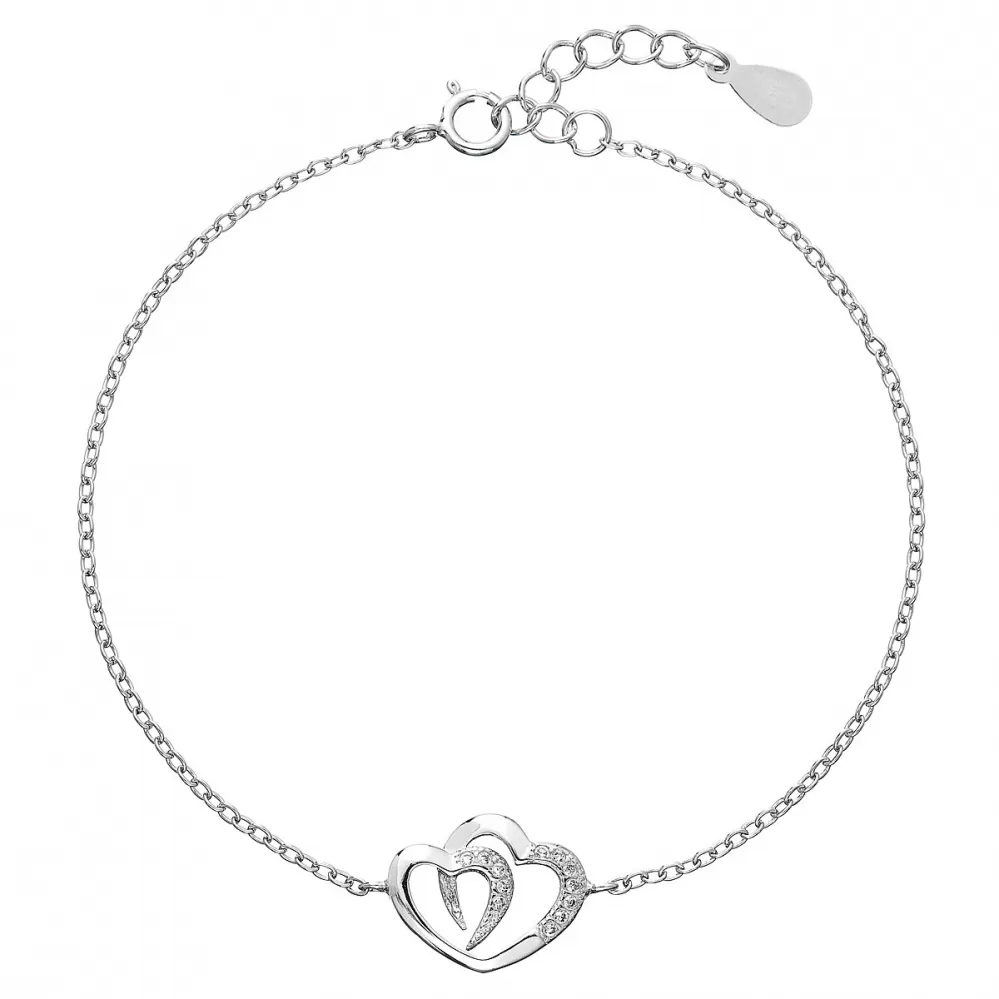 Strieborný náramok so zirkónmi dvojité srdce 13011.1