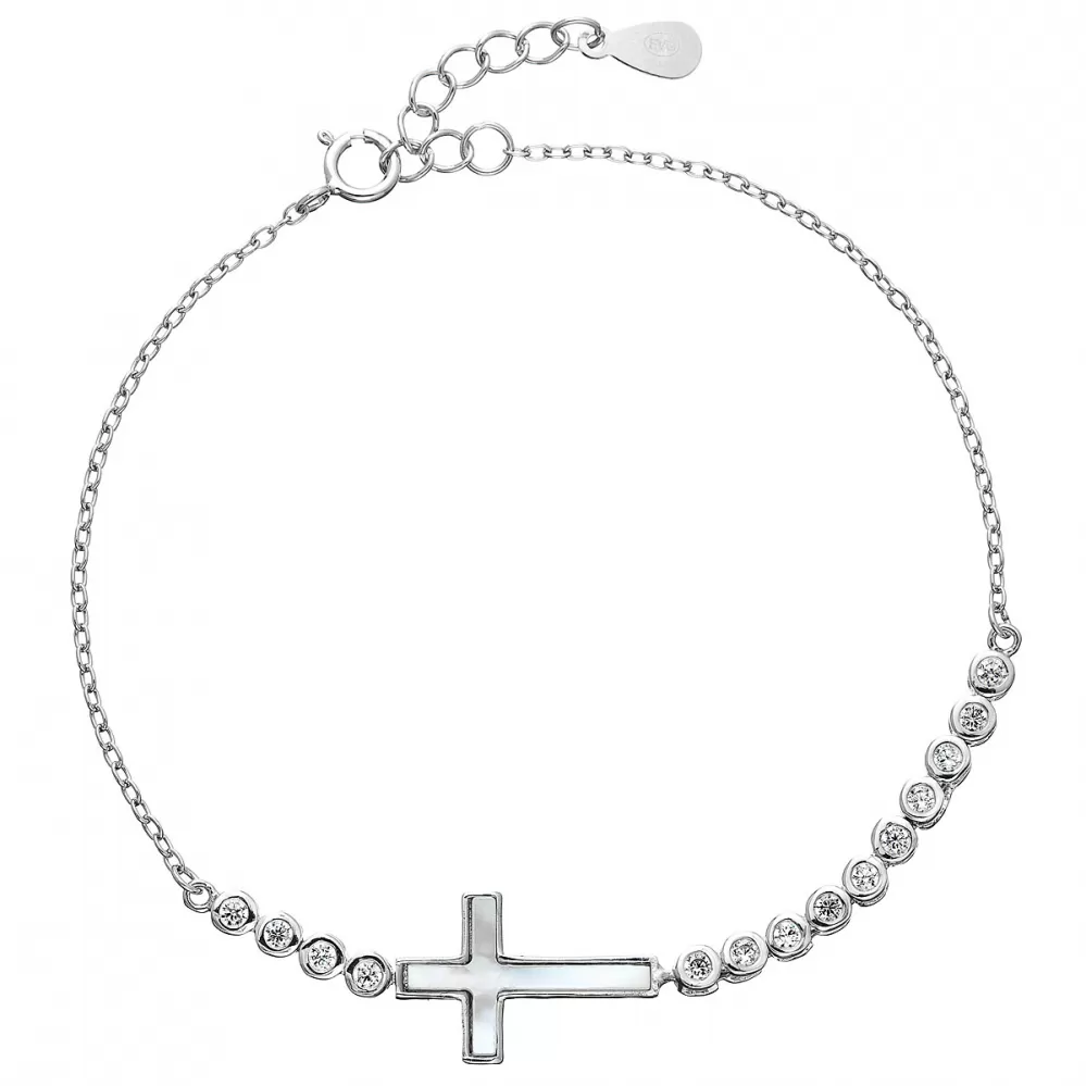 Strieborný náramok so zirkónmi krížik 13016.1
