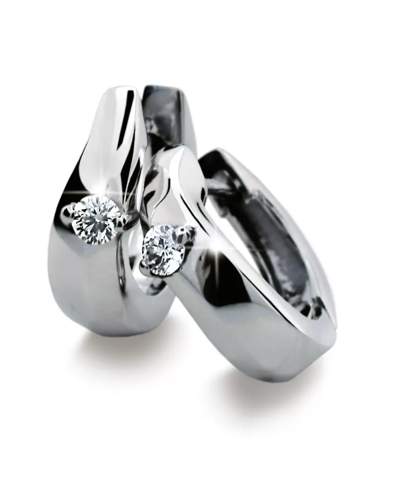 Krúžky - náušnice s bielym zirkónom sú vyrobené z bieleho štrnástich karátového zlata 585/000 v lesklej povrchovej úprave.