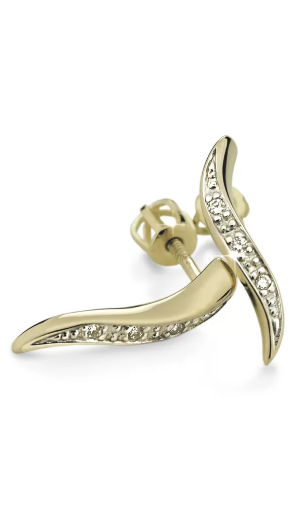 Náušnice sú vyrobené zo žltého zlata 585/1000 s tromi drobnejšími bielymi zirkónmi. Náušnice sú vyrobené v lesklej povrchovej úprave so zapínaním na skrutky a balóniky.