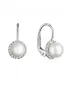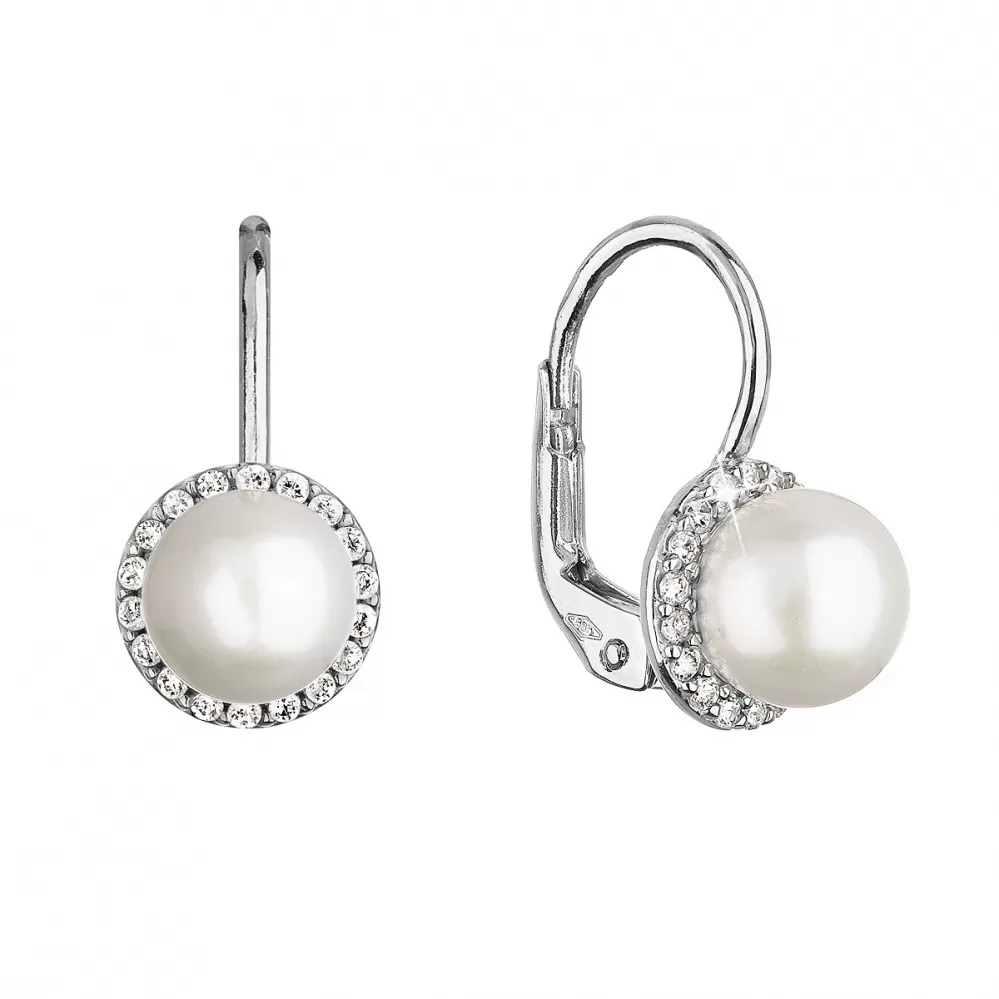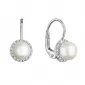 Zlaté 14 karátové náušnice biele zlato s riečnou perlou a zirkónmi 81PZ00020