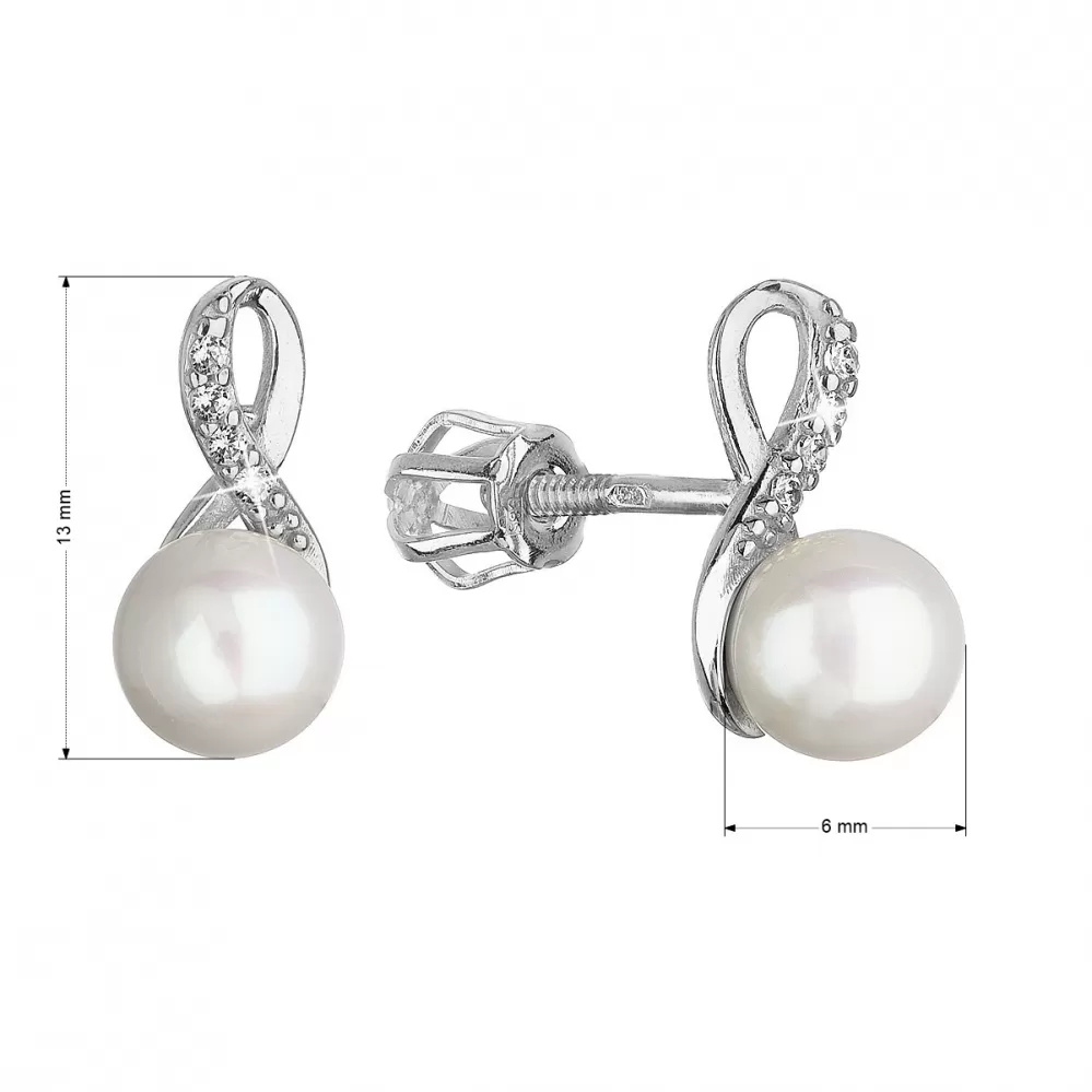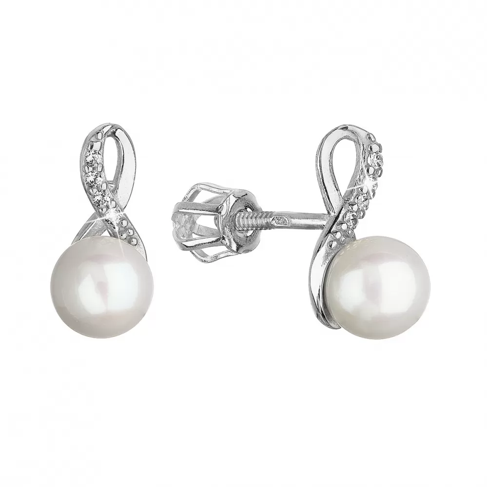Zlaté 14 karátové náušnice biele zlato s riečnou perlou a zirkónmi 81PZ00028 nekonečno