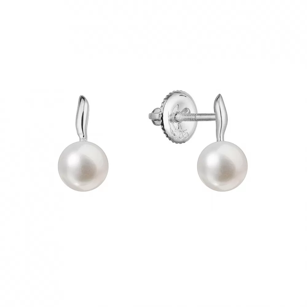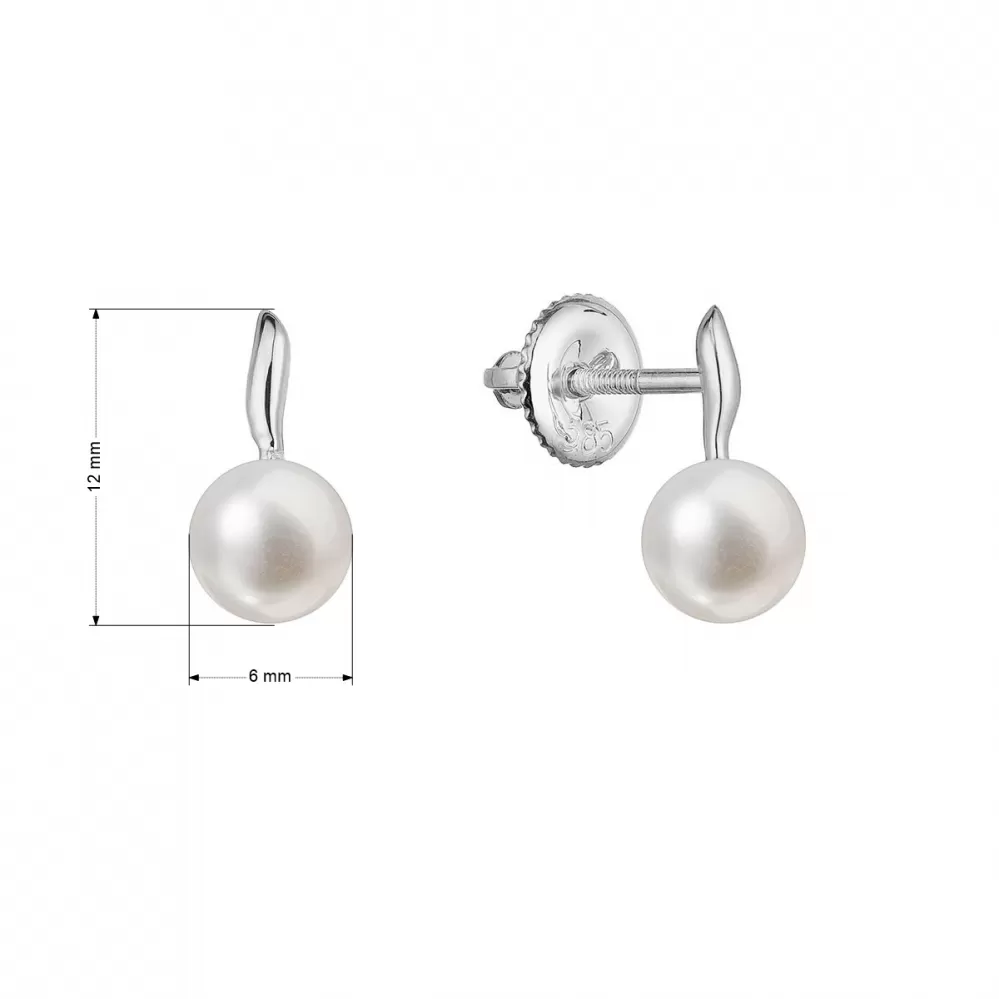 Zlaté 14 karátové náušnice kôstky biele zlato s bielou riečnou perlou 81P00049