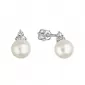 Parametre zlatých 14-karátových náušníc pecka biele zlato s riečnou perlou a tromi zirkónmi 81PZ00025