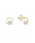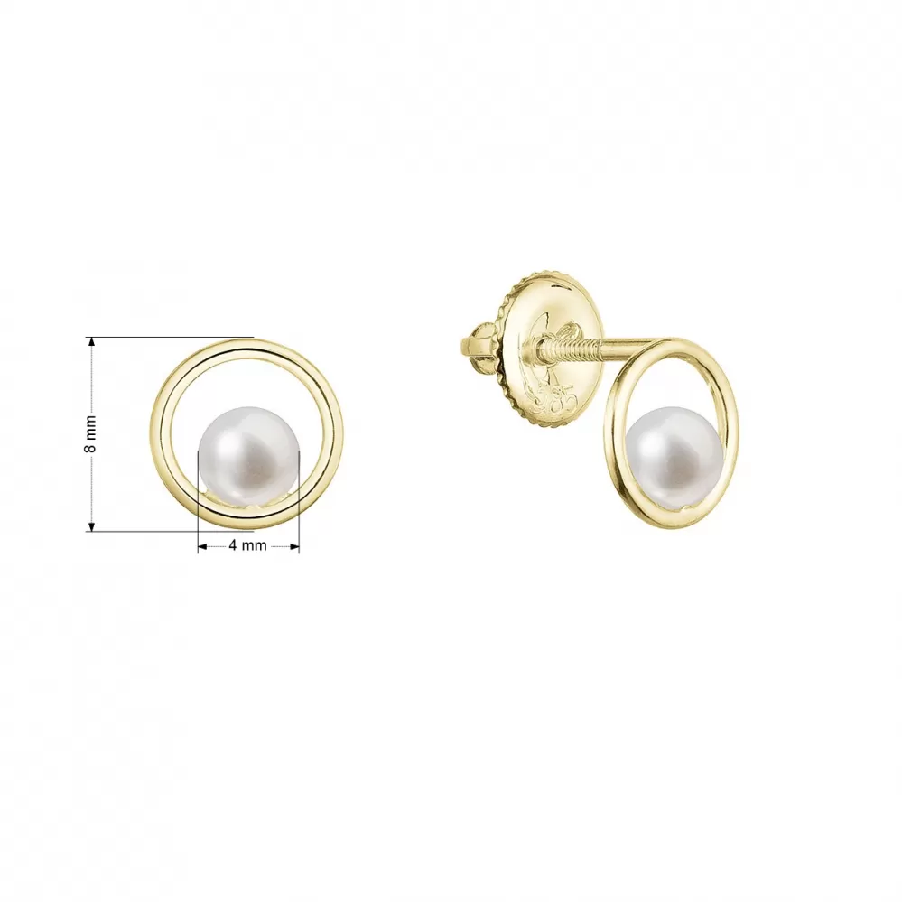 Zlaté náušnice tvorené z krúžku v ktorom sa leskne biela riečna perla zaujmú svojou jednoduchosťou.