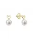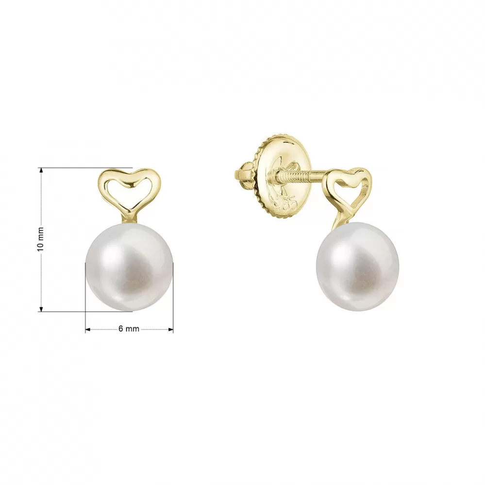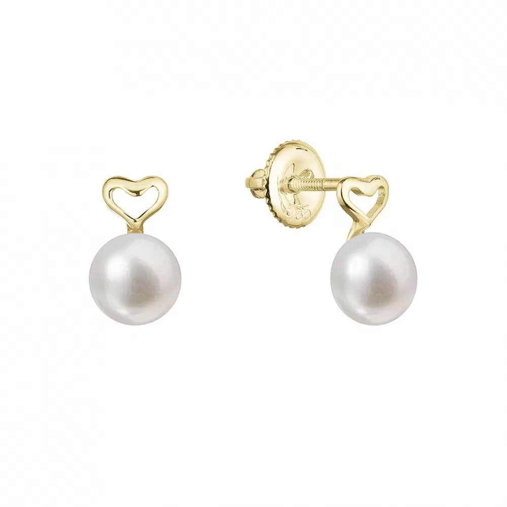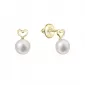 Zlaté 14 karátové náušnice kôstky žlté zlato srdiečko s bielou riečnou perlou 91P00048