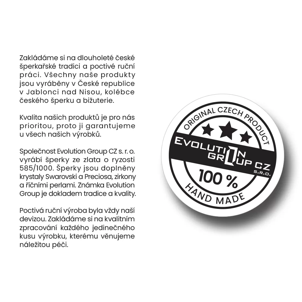 Zlaté náušnice pre Vás ručne vyrobili naše šikovné šperkárky v prevádzke v Jablonci nad Nisou. Na výrobu šperku bolo použité zlato rýdzosti 585/1000. Pravosť zlata a riečnych perál Vám doloží certifikát pravosti, ktorý nájdete priložený pri náušniciach.