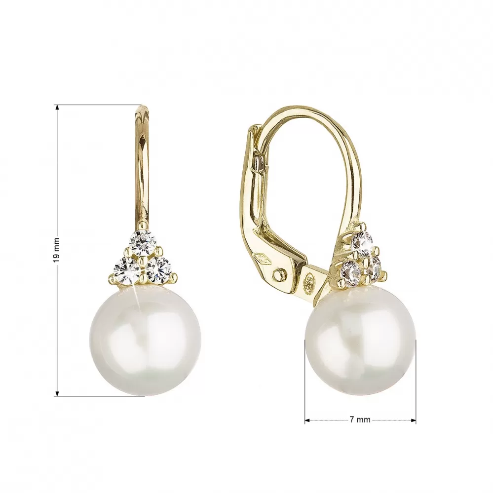 Parametre zlatých 14-karátových náušníc žlté zlato s riečnou perlou a tromi zirkónmi 91PZ00024
