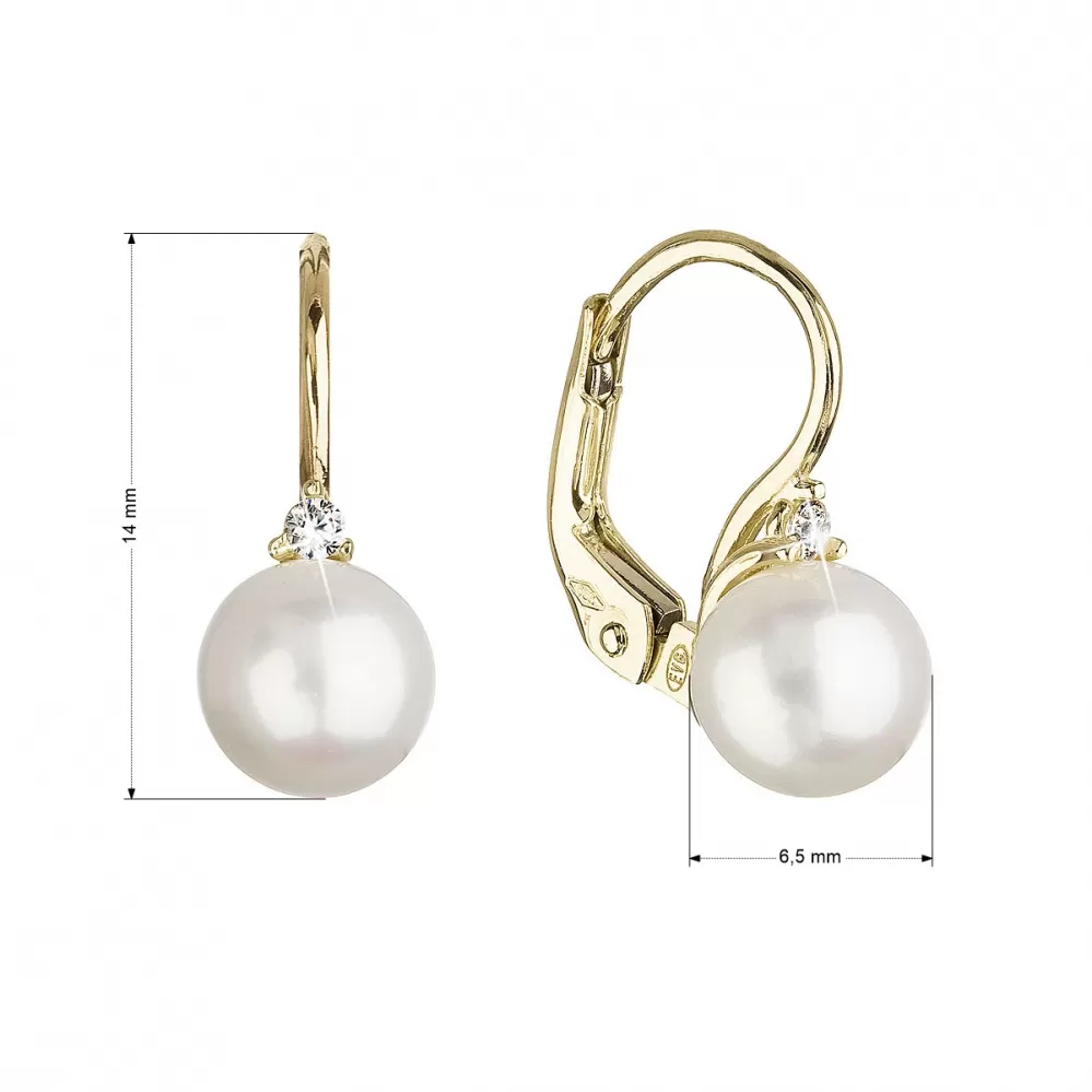 Parametre zlatých 14-karátových náušníc žlté zlato s riečnou perlou a zirkónom 91PZ00023