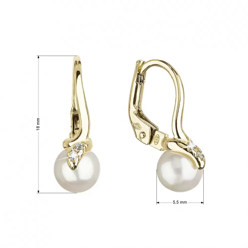 Parametre zlatých 14-karátových náušníc žlté zlato s riečnou perlou a zirkónmi 91PZ00029