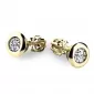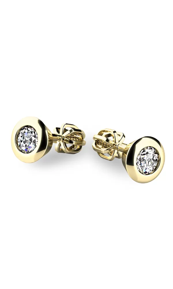 Klasický dizajn náušníc v elegantnej kombinácii lesklej obruby a zirkónov. Tieto náušnice sú vyrobené zo žltého štrnásťkarátového zlata - 585/1000 a sú celé v lesklej povrchovej úprave. Náušnice sú zdobené dvoma zirkónmi briliantového brusu. Vďaka precíznemu brúsu majú zirkóny dokonalú brilanciu. Skvele odráža svetlo a september. Zapínanie náušníc je na skrutky a balóniky.