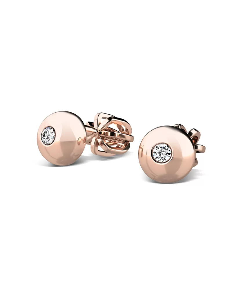 Náušnice sú čistého dizajnu v klasickom prevedení, ktorý patrí stále k najobľúbenejším typom. Tieto náušnice sú vyrobené z ružového štrnásťkarátového zlata - 585/1000 a sú celé v lesklej povrchovej úprave. Náušnice sú zdobené dvoma zirkónmi briliantového brusu, ktorý im dodáva dokonalú brilanciu. Skvele odráža svetlo a september. Vsadzovanie zirkónov vykonávajú naši najskúsenejší majstri zlatníci ručne pod mikroskopom s presnosťou na 0,01 mm a preto nehrozí vypadnutie kamienkov ako to býva u strojne vyrábaných náušníc. Zapínanie náušníc je na skrutky a balóniky.