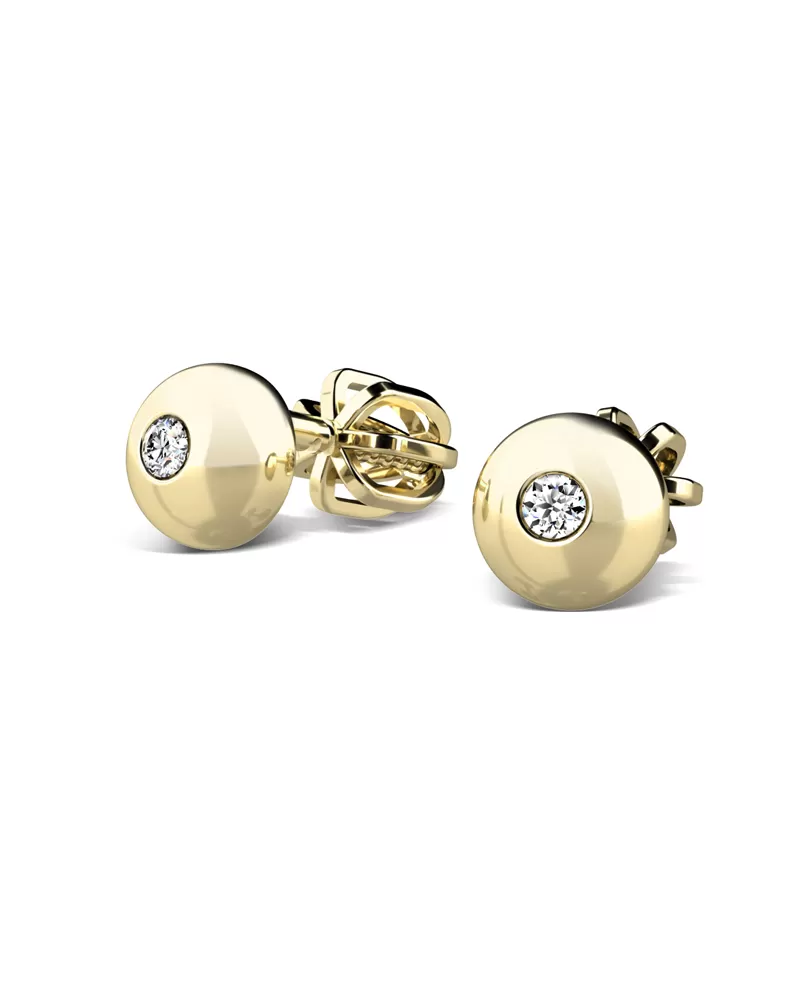 Náušnice sú čistého dizajnu v klasickom prevedení, ktorý patrí stále k najobľúbenejším typom. Tieto náušnice sú vyrobené zo žltého štrnásťkarátového zlata - 585/1000 a sú celé v lesklej povrchovej úprave. Náušnice sú zdobené dvoma zirkónmi briliantového brusu, ktorý im dodáva dokonalú brilanciu. Skvele odráža svetlo a september. Vsadzovanie zirkónov vykonávajú naši najskúsenejší majstri zlatníci ručne pod mikroskopom s presnosťou na 0,01 mm a preto nehrozí vypadnutie kamienkov ako to býva u strojne vyrábaných náušníc. Zapínanie náušníc je na skrutky a balóniky.