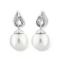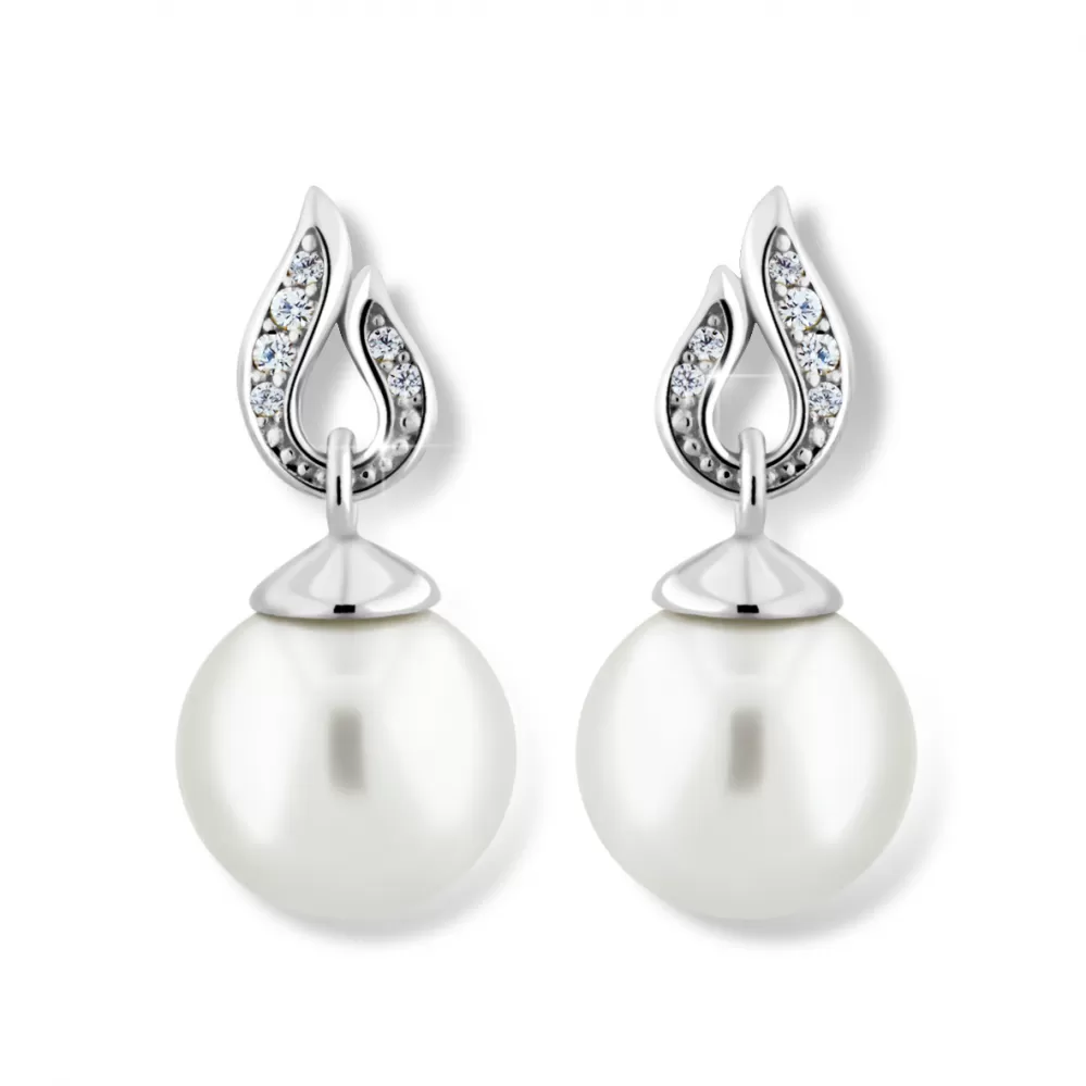 Nádherné luxusné náušnice sú tvorené slzičkou, ktorá je vysadená zirkónmi v briliantovom bruse a príveskom vo forme veľkej perly v bielej farbe. Náušnice vás dokonale ozdobia pri akejkoľvek príležitosti. Budú vhodným doplnkom na plesy alebo dôležité akcie. Vždy vás budú skvele reprezentovať. Náušnice sa zapínajú na skrutku.