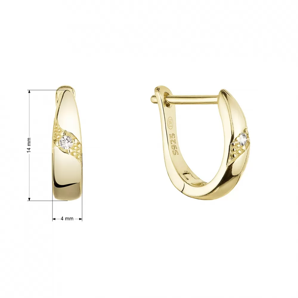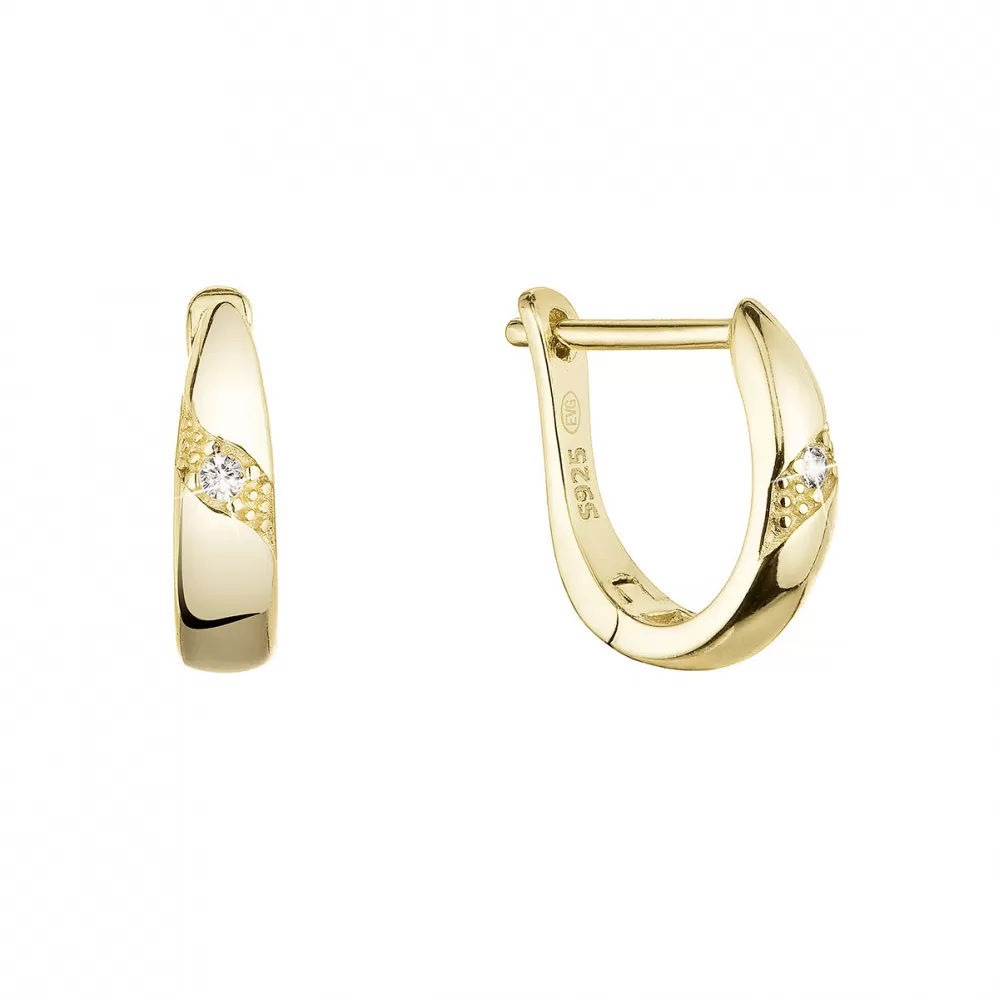 Pozlátené náušnice 11460.1 v tvare polkruhu sú vyrobené z pozláteného striebra o rýdzosti 925/1000. Náušnice zapnete na ruský patent, ktorý ich ochráni proti nechcenej strate. Keďže do náušnícnie je pridaný nikel, môžu ich bez obáv nosiť aj alergici.