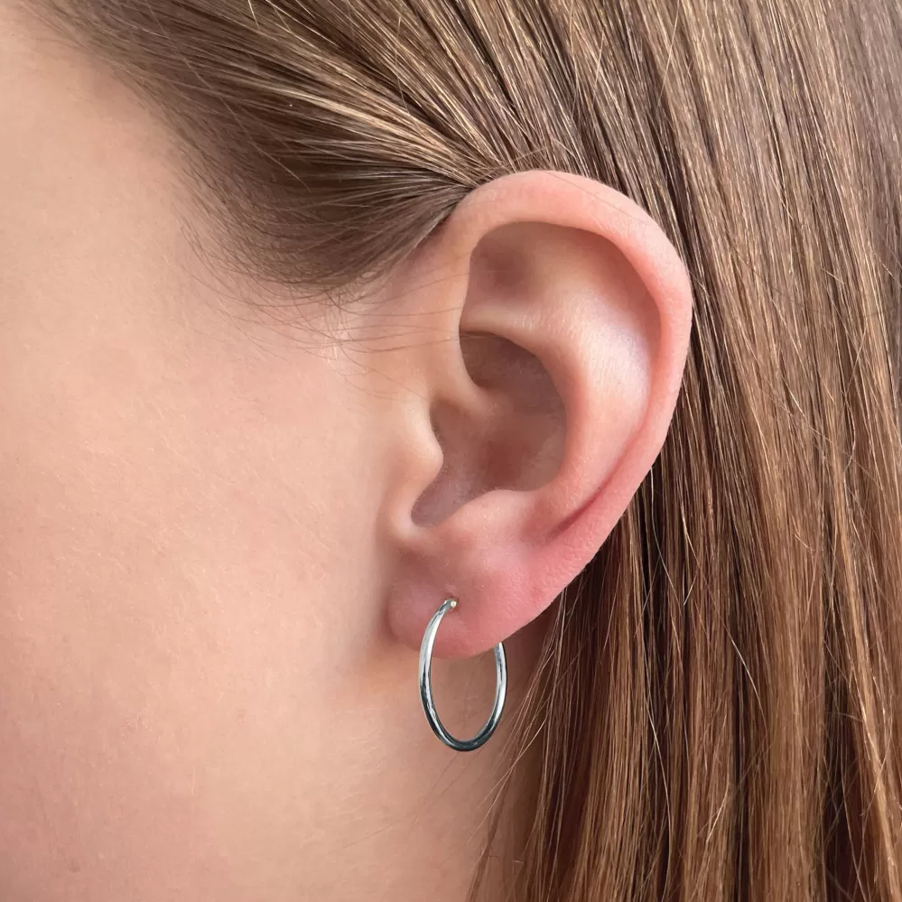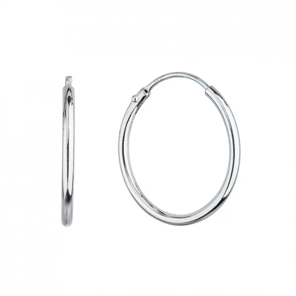 Strieborné náušnice typu kruhy61002 sú vyrobenézo striebra rýdzosti 925/1000, ktorého povrch je upravený ródiom. Rhodium šperk ochráni proti sčerneniu, zožltnutiu alebo poškriabaniu.