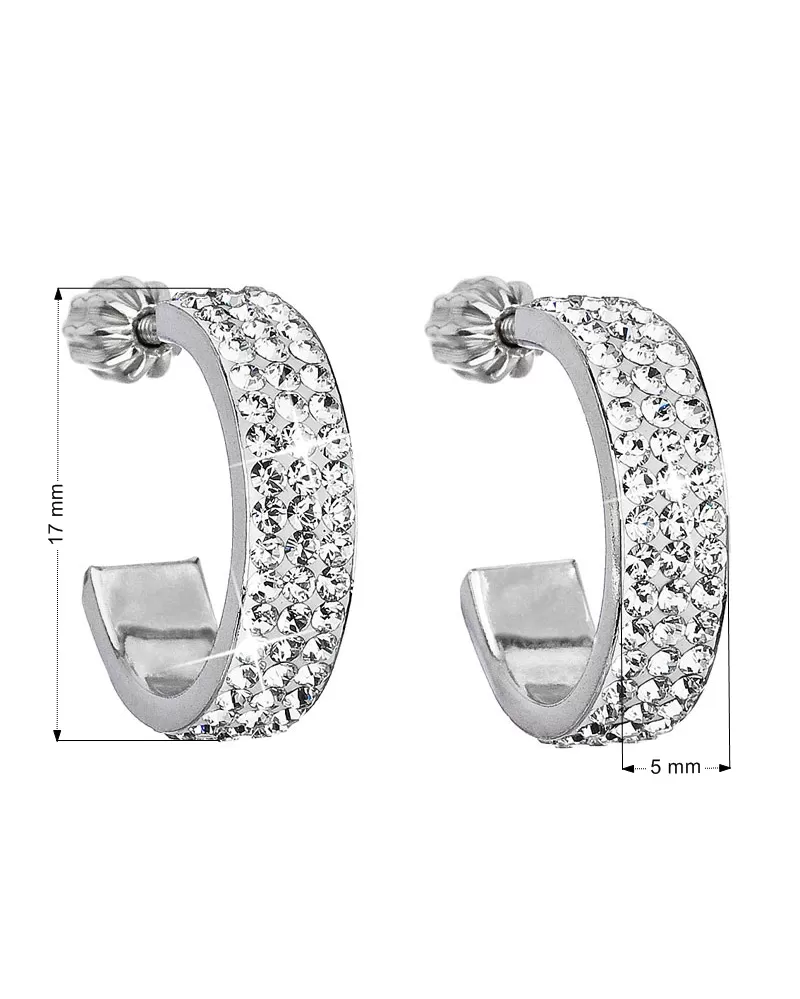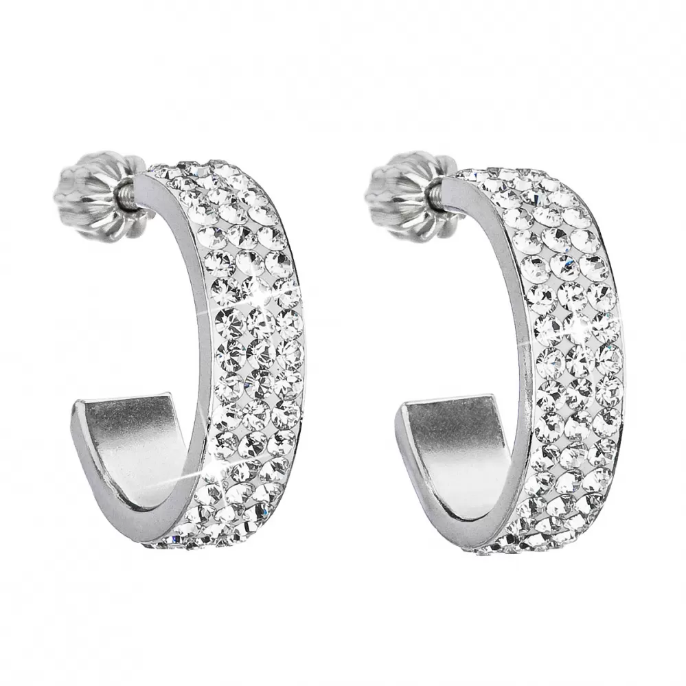 Náušnice 31119.1 v tvare polkruhu sú vyrobené zo striebra o rýdzosti 925/1000 s povrchovou úpravou ródiom a sú zdobené mnohými Swarovski kryštálmi v bielej farbe. Vďaka Swarovski kryštálom sa náušnice nádherne trblietajú. Náušnice zapnete  na balónik, ktorý ich spoľahlivo ochráni proti nechcenej strate. Keďže do náušnícnie je pridaný nikel, môžu ich bez obáv nosiť aj alergici.