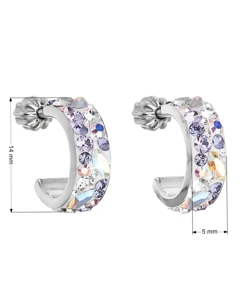 Náušnice 31118.3 violet v tvare polkruhu sú vyrobené zo striebra o rýdzosti 925/1000 s povrchovou úpravou ródiom a sú zdobené mnohými Swarovski fialovými a bielymi farbami v odtieňoch. Vďaka Swarovski kryštálom sa náušnice nádherne trblietajú. Náušnice zapnete na balónok, ktorý ich spoľahlivo ochráni proti nechcenej strate. Keďže do náušnícnie je pridaný nikel, môžu ich bez obáv nosiť aj alergici.