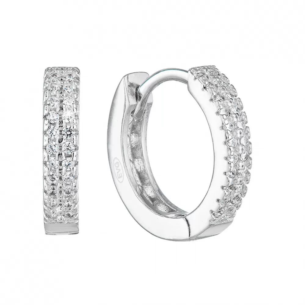 Strieborné náušnice kruhy so zirkónom v bielej farbe 11238.1