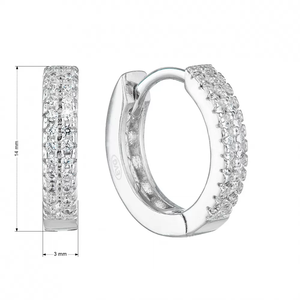Parametre strieborných náušníc kruhy so zirkónom v bielej farbe 11238.1