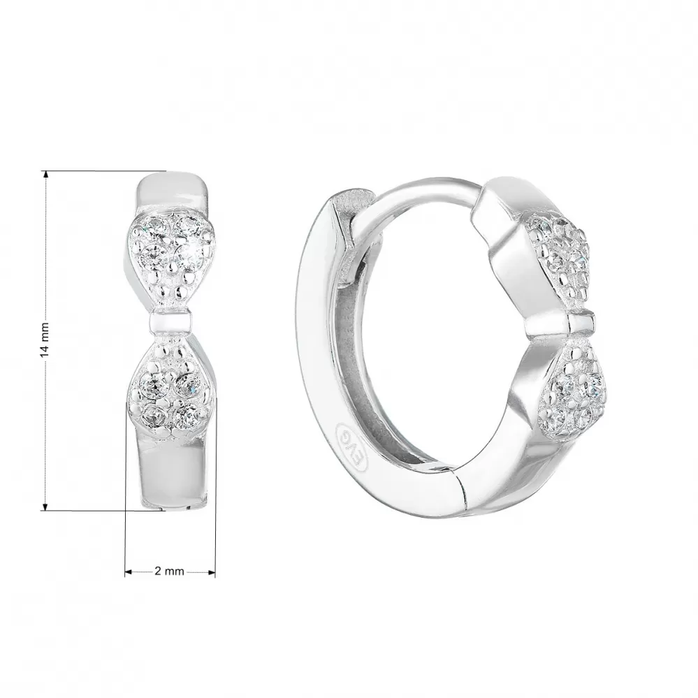 Parametre strieborných náušníc kruhy so zirkónom v bielej farbe 11251.1