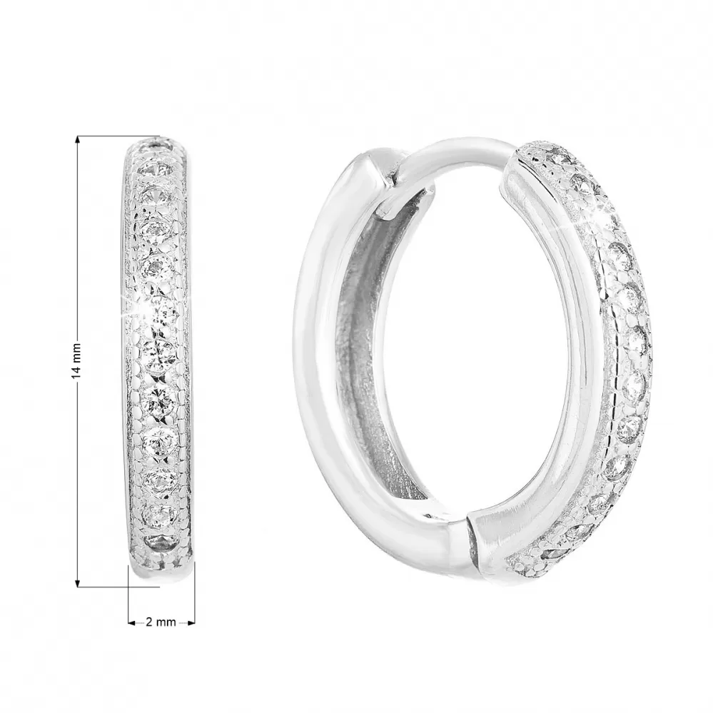 Parametre strieborných náušníc kruhy so zirkónom v bielej farbe 11316.1