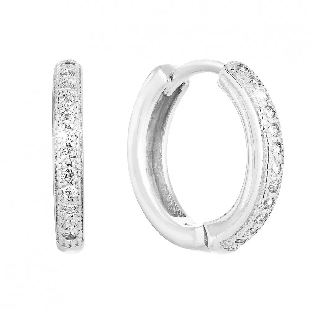 Strieborné náušnice kruhy so zirkónom v bielej farbe 11316.1