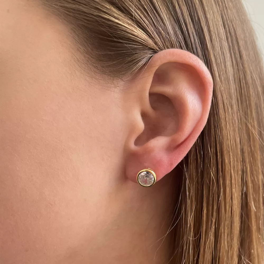 Elegantne v pozlátenom striebre sa blyští zirkónik ako hviezda. Moderné minimalistické náušnice sú najobľúbenejšie pre ich jednoduchosť a krásu.
