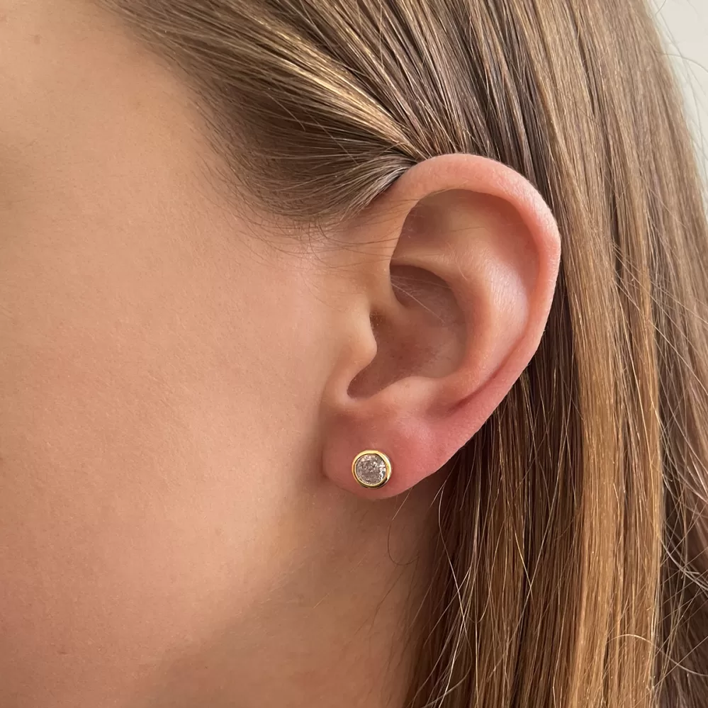 Elegantne v pozlátenom striebre sa blyští zirkónik ako hviezda. Moderné minimalistické náušnice sú najobľúbenejšie pre ich jednoduchosť a krásu.