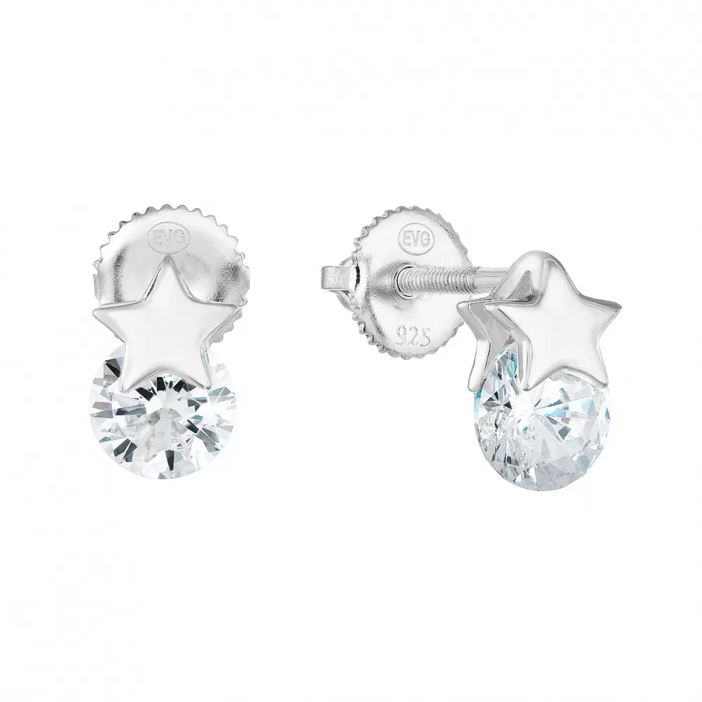 Strieborné napichovacie náušnice so zirkónovou bielou hviezdou 11267.1