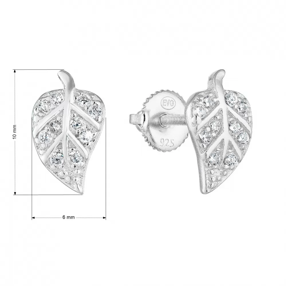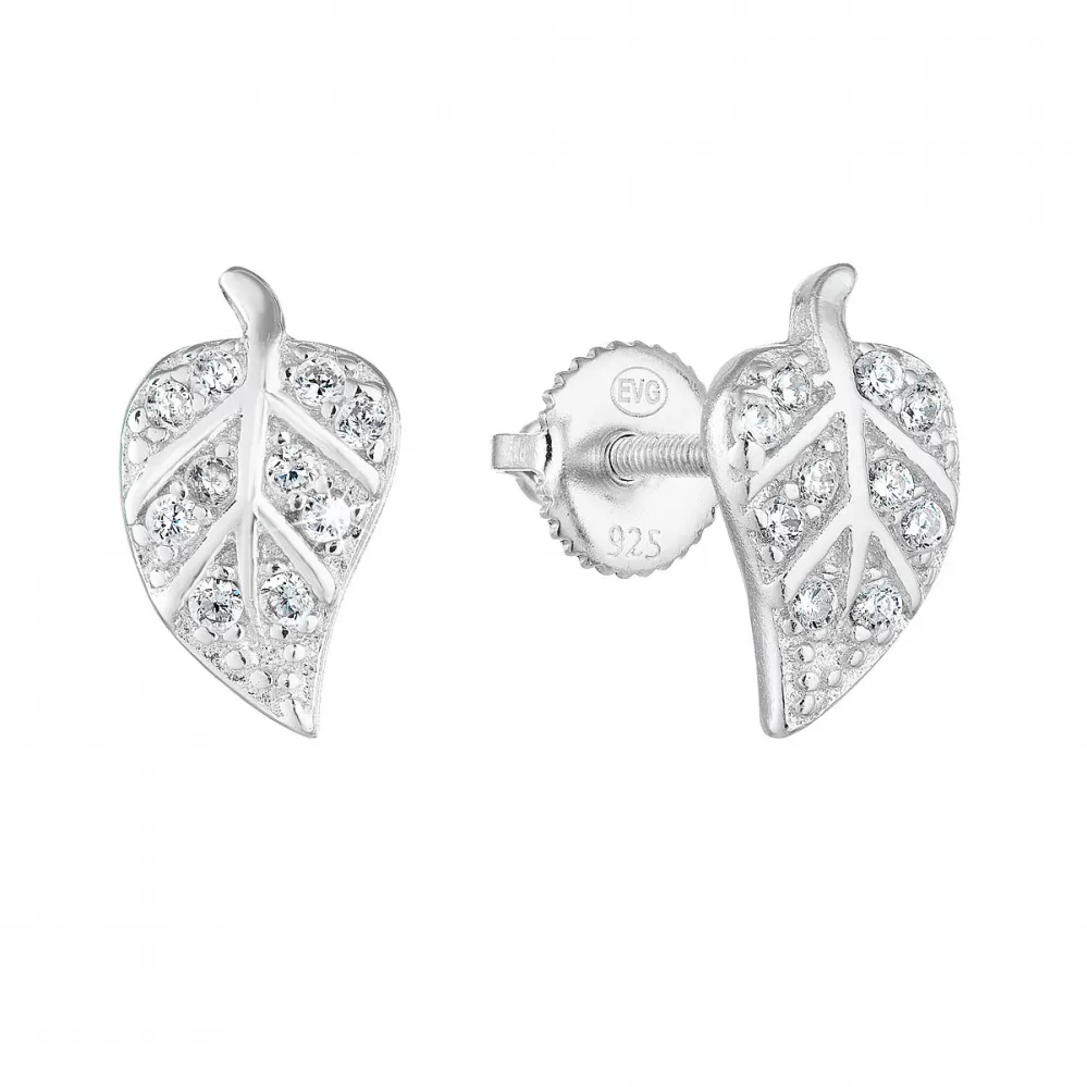 Máte radi prírodné motívy? Doplňte svoju šperkovnicu striebornými náušnicami v tvare lístkov osadenými bielymi zirkónmi.