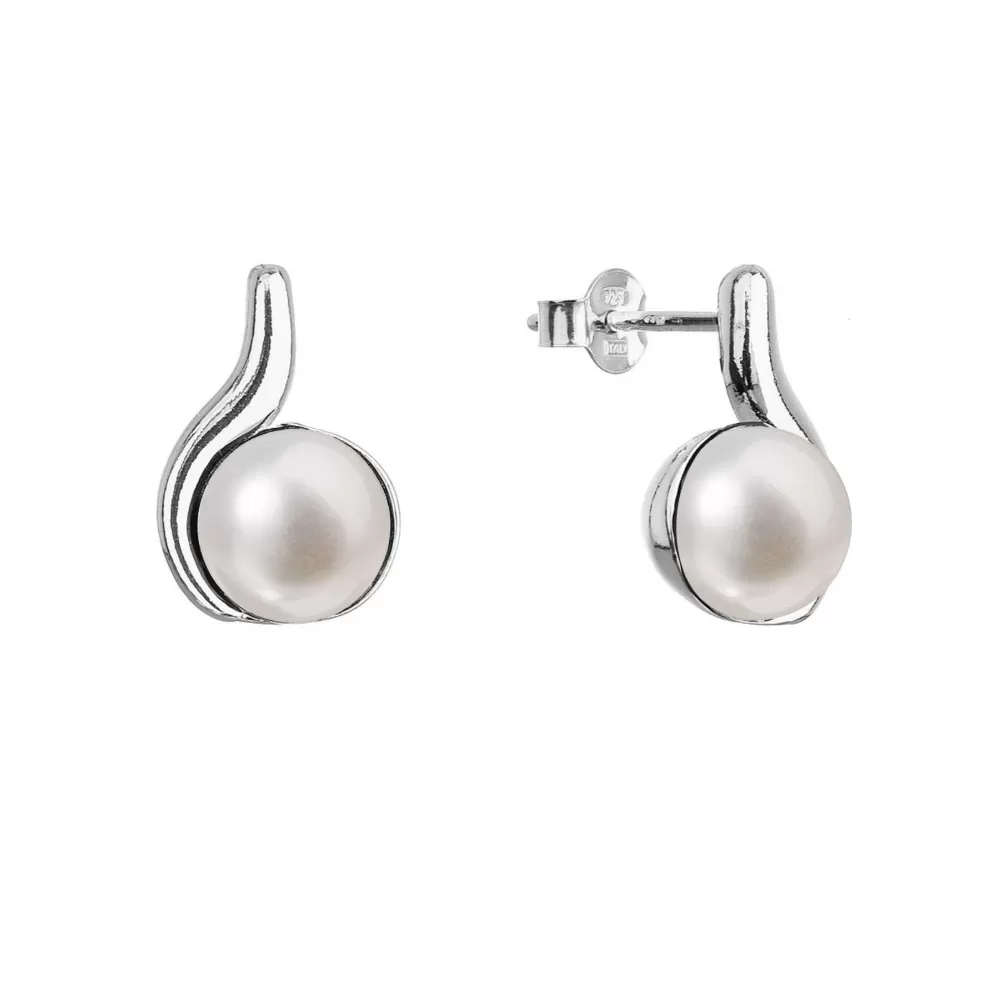 Jemné strieborné náušnice s krásnou riečnou perlou lesknúcou sa vo vlnke vám pridajú na elegancii.