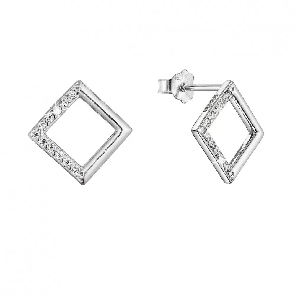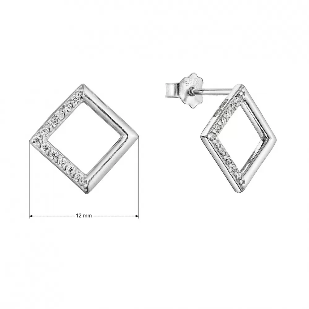 Strieborné náušnice kosoštvorčeky so zirkónmi 11527.1 crystal