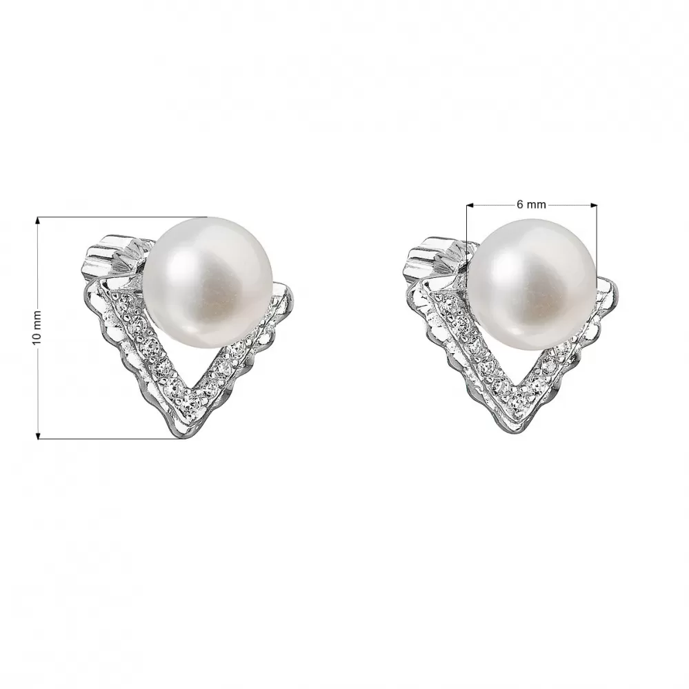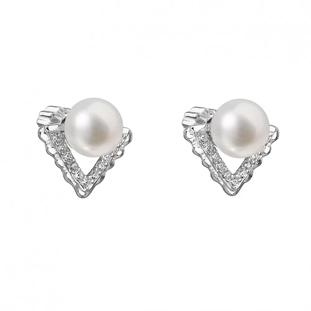Moderné strieborné náušnice 21012.1 ponúkajú originálny a neopozeraný dizajn v tvare trojuholníčkov vysadených 11 trblietavými zirkónmi s veľkou bielou riečnou perlou uprostred. Náušnice sú vyrobené zo striebra rýdzosti 925/1000 a majú zapínanie na balónik. Ten spoľahlivo ochráni šperk proti nechcenej strate. Perly, ktorými sú náušnice zdobené, spadajú do kategórie najvyššej kvality AAA. Náušnice sa nemusia báť nosiť ani alergici, sú kvalitné a neobsahujú žiadny prídavok lacného niklu.
