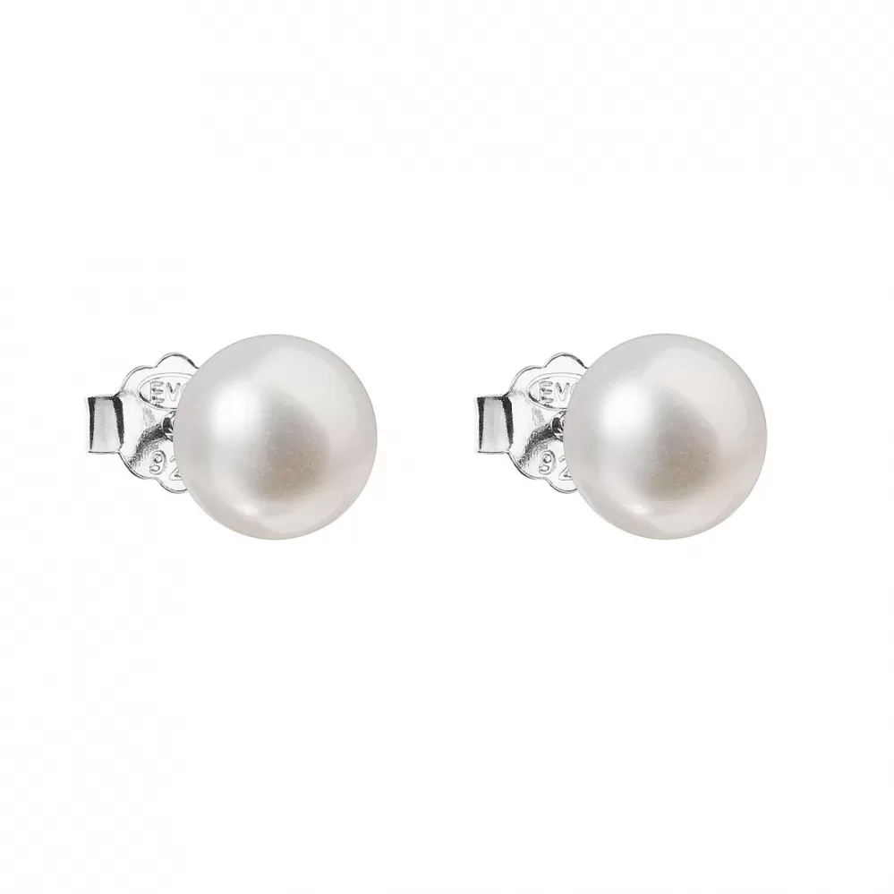 Strieborné náušnice kôstky s bielou riečnou perlou 21042.1