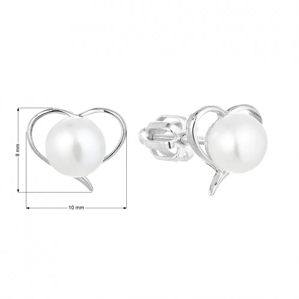Roztomilé strieborné náušnice v tvare srdiečok zdobené pravou riečnou perlou osviežia váš každodenný outfit.