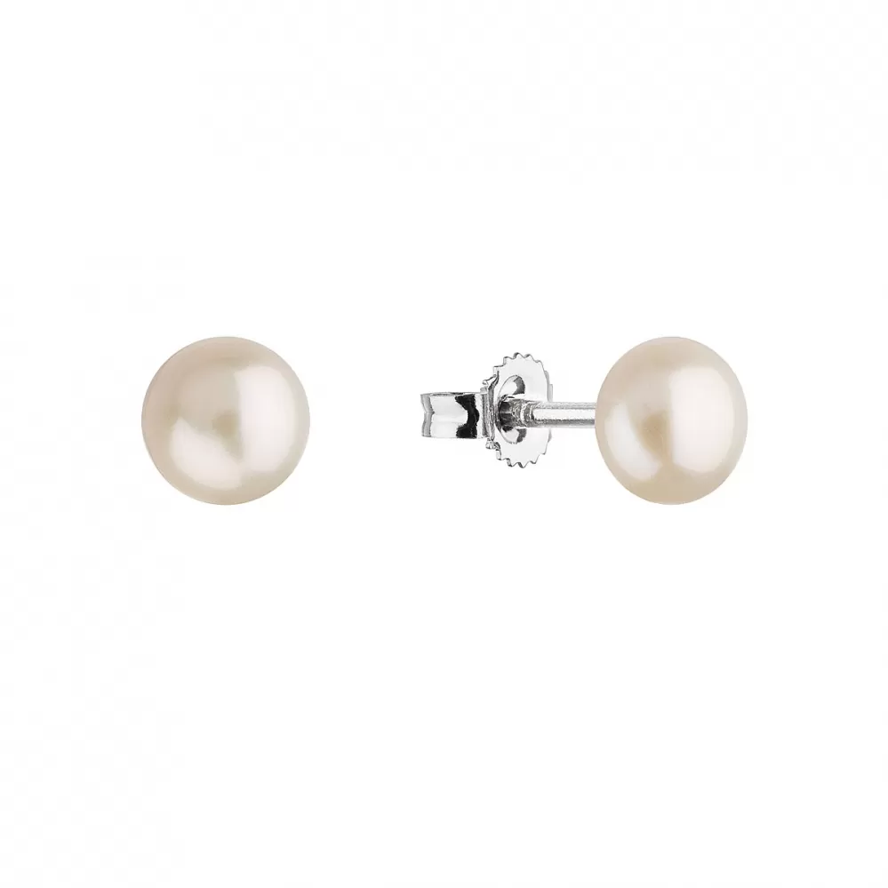 Strieborné náušnice kôstky s bielou riečnou perlou 21064.1