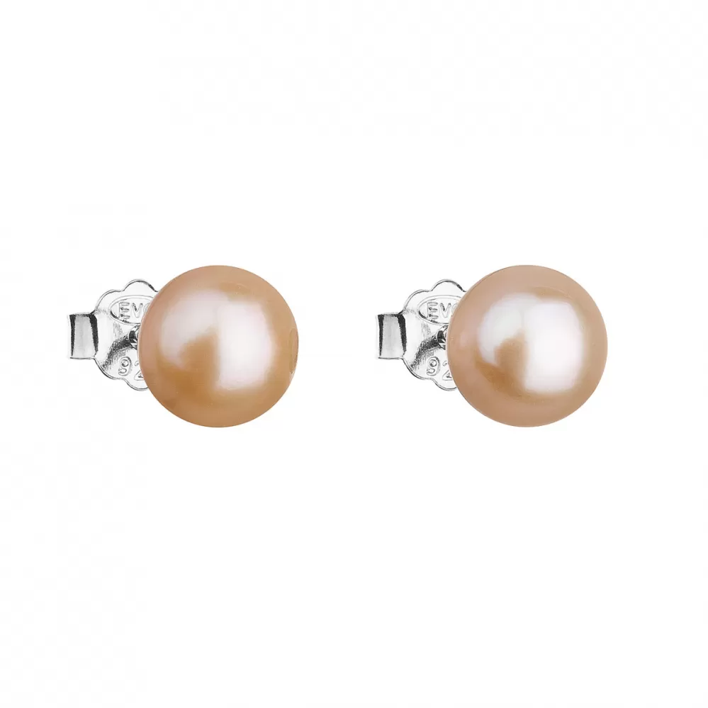 Strieborné náušnice kôstky s oranžovou riečnou perlou 21042.3