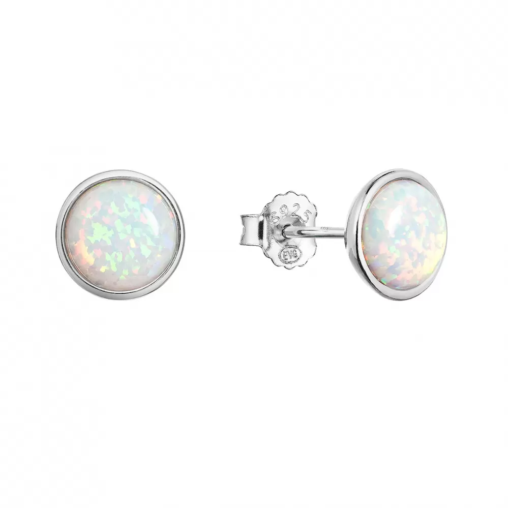 Strieborné náušnice kôstky so syntetickým opálom biele 11465.1 white