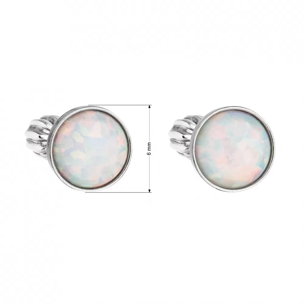 Parametre strieborných náušníc kôstok so syntetickým opálom biele okrúhle 11001.3