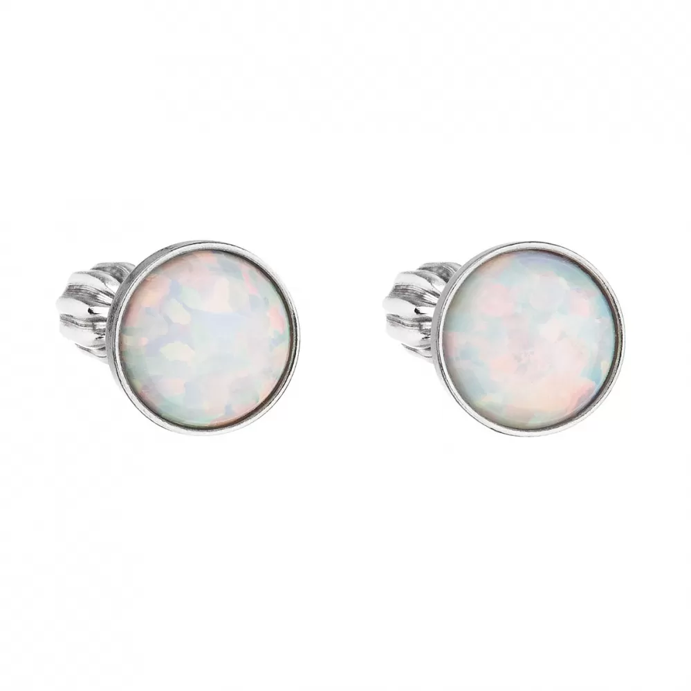 Strieborné náušnice kôstky so syntetickým opálom biele okrúhle 11001.3