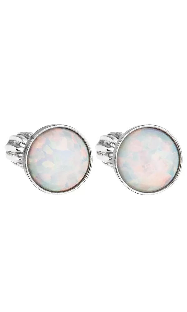 Náušnice 11001.3 sú vyrobené zo striebra rýdzosti 925/1000 vrátane povrchovej úpravy ródiom a je do nich zasadený okrúhly syntetický opál zdobený niekoľkými odtieňmi bielej farby. Opál sa krásne trblieta a hádže rôzne farebné odlesky. Náušnice sa zapínajú na balónik, ktorý ich spoľahlivo ochráni proti ich strate. Keďže do šperku nie je pridaný žiadny nikel, môžu ich s radosťou nosiť aj alergici.