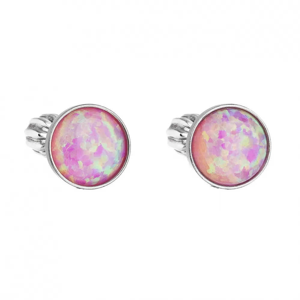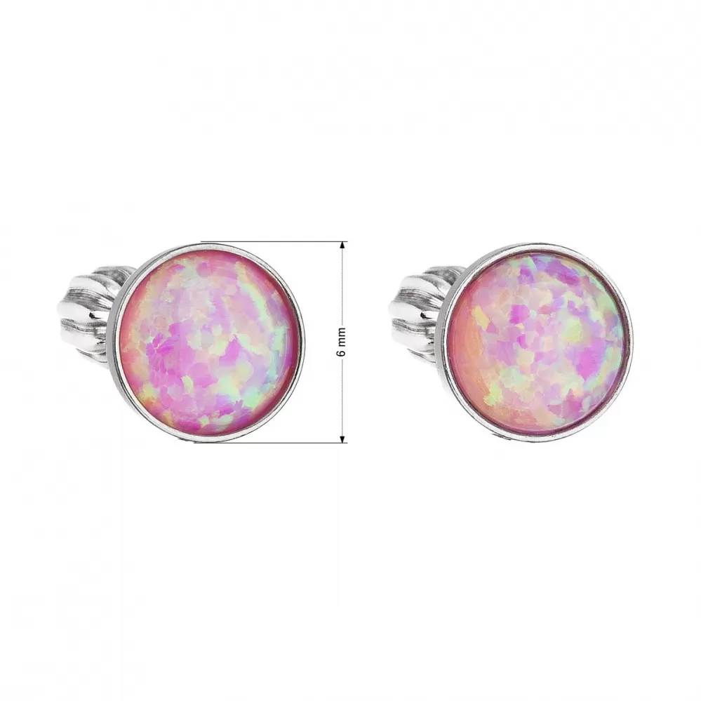 Strieborné náušnice kôstky so syntetickým opálom ružové okrúhle 11001.3