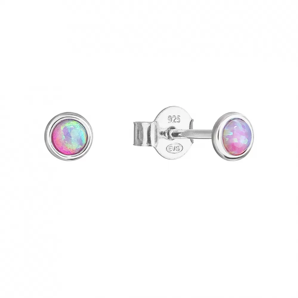 Strieborné náušnice kôstky so syntetickým opálom ružové okrúhle 11338.3