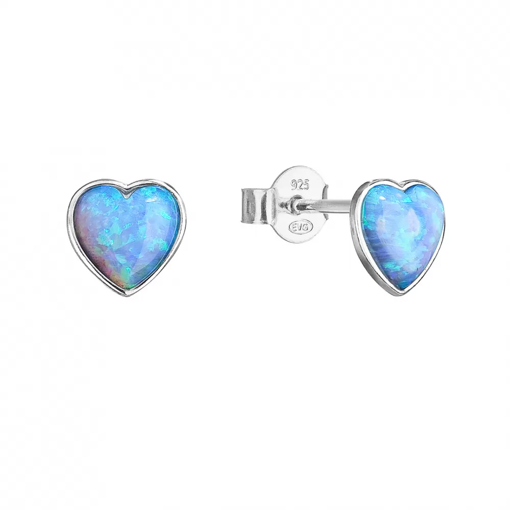 Parametre strieborných náušníc kôstky so syntetickým opálom svetlo modré srdce 11337.3