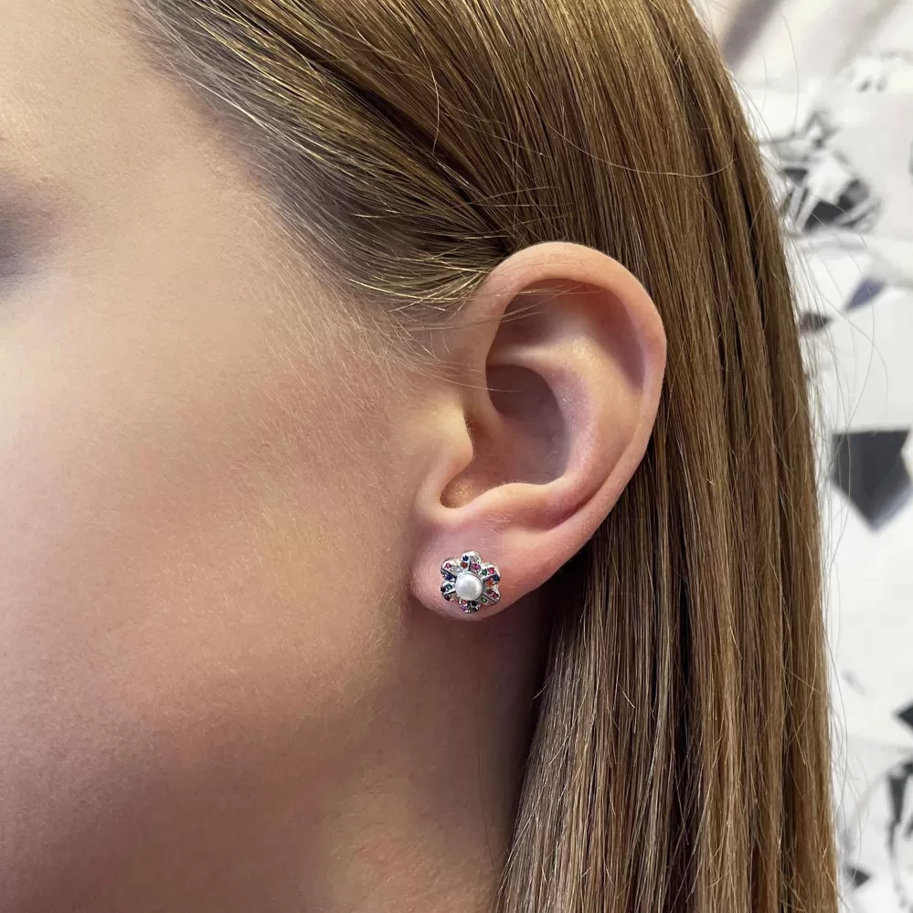 Parametre strieborných náušníc kvietky multi zirkónmi s bielou riečnou perlou 21071.3 multi